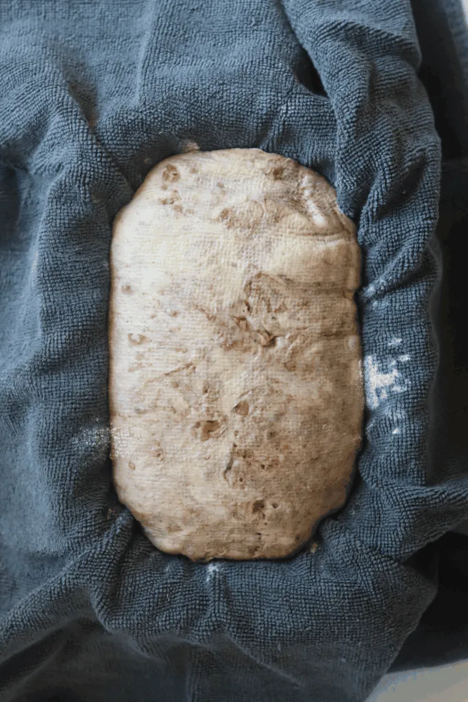4. Let the dough rise completely in a warm place for bulk fermentation.
