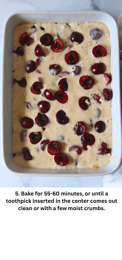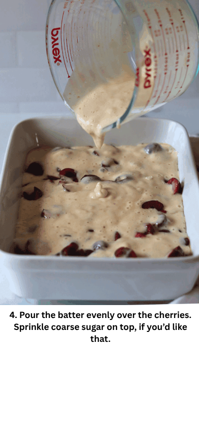 4. Spoon or pour the sourdough batter evenly over the cherry filling, letting some cherries peek through.