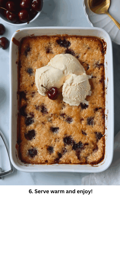 • Bake the cobbler thoroughly until the topping is golden brown and the cherry filling is bubbling to ensure proper cooking and food safety.
