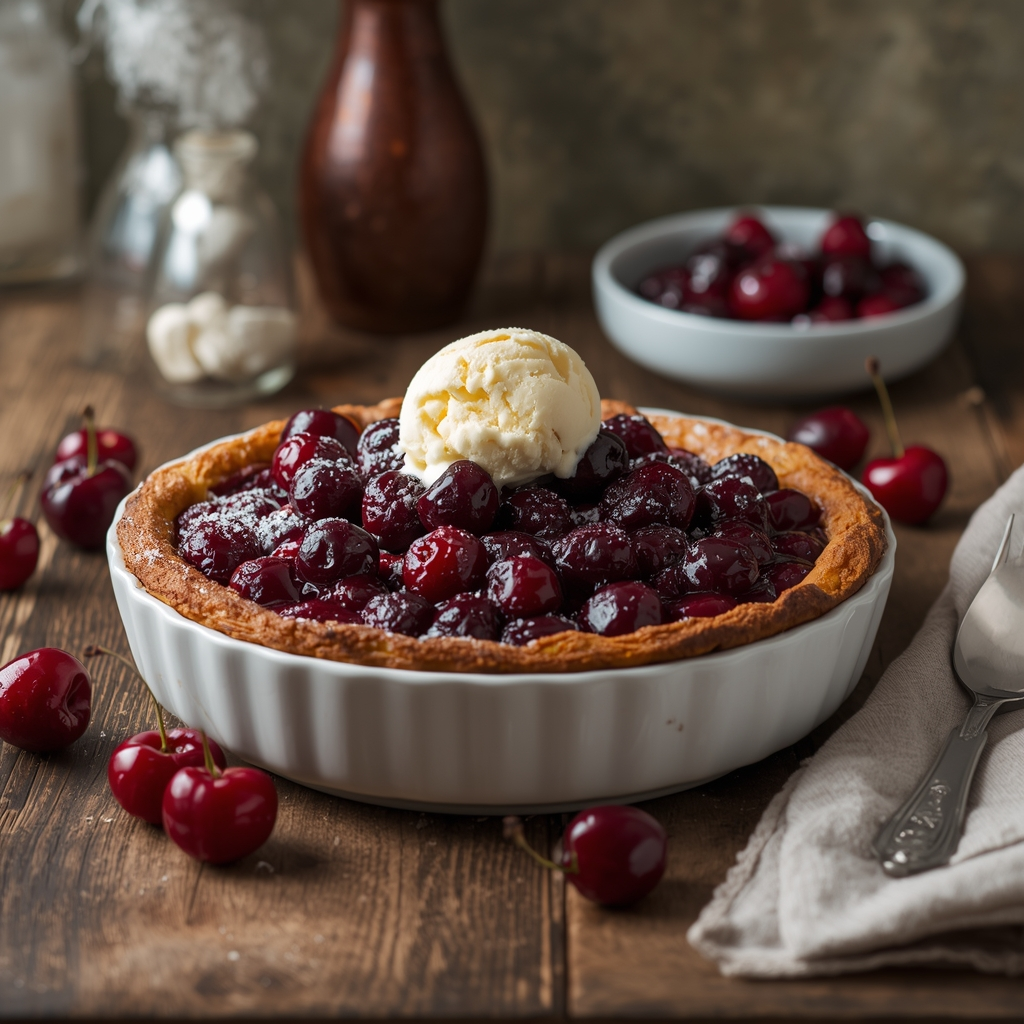 This quick cobbler showcases the vibrant flavors of fresh cherries or the easy appeal of frozen cherries. Just toss them into a baking dish, and let the natural sweetness shine through, perfectly completed by a fluffy, cake like batter. The beauty lies in its simplicity. There are no eggs, no mixer, and you’re left with minimal cleanup, making this recipe not just delicious but also a delight for the busy home cook.