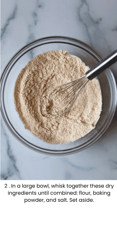 • In a large bowl, whisk together flour, baking powder, and salt until combined. Set aside.