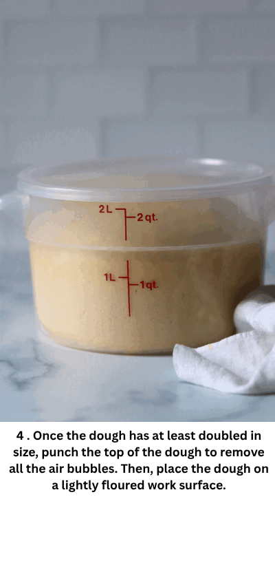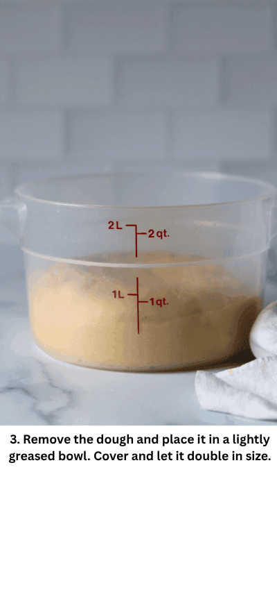 - Place dough in a greased bowl, cover, and let it double in size (about 1-2 hours).