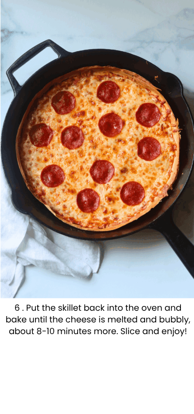 - Pop the skillet back into the oven and bake until the cheese is melted and bubbly, about 8-10 minutes more. Slice and enjoy!