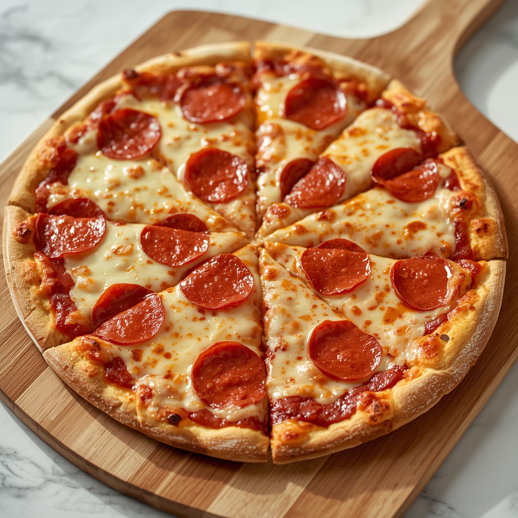 - Meat Lovers: Tomato sauce, shredded mozzarella, pepperoni slices, cooked sausage crumbles, and crispy bacon bits.