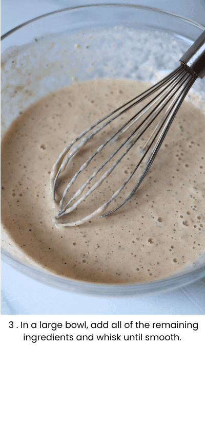 - To prepare the batter, add the flour, baking powder and seasoning to a large bowl and whisk until combined. To the flour mixture add the milk, water and sourdough discard and whisk until smooth.