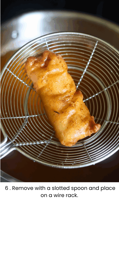 - Do not overcrowd the frying pot; frying too many pieces at once lowers the oil temperature, affecting crispiness and safety.