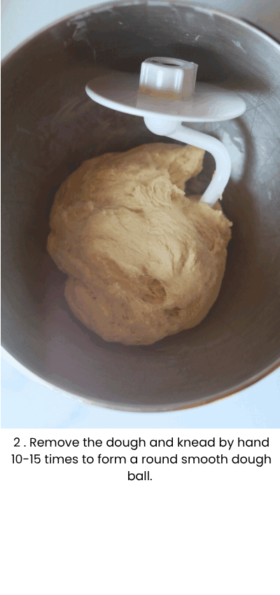 - In a bowl of a stand mixer with the hook attachment, add all of the dough ingredients and mix on medium-low speed for 2-3 minutes. After kneading, the dough should pull away from the sides of a bowl, look smooth and elastic. You can also knead the dough by hand on a clean surface.