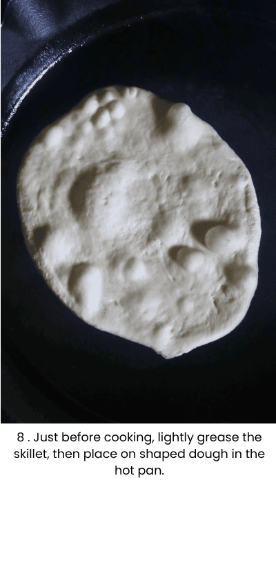 - Just before shaping, preheat a cast iron skillet to medium-high heat.